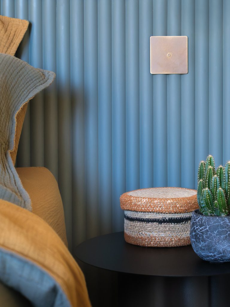 un éclairage doux, des matières enveloppantes, un coin propice à la lecture et à la détente. Cette chambre haut de gamme à Nice est devenue un espace intime, incarné, pensé comme un véritable cocon.